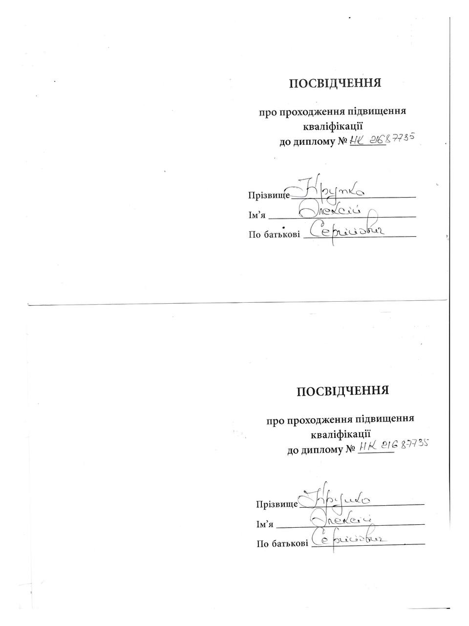 2017 р. – ТУ «Доплерографія в акушерстві та гінекології» - Харківська медична академія післядипломної освіти.