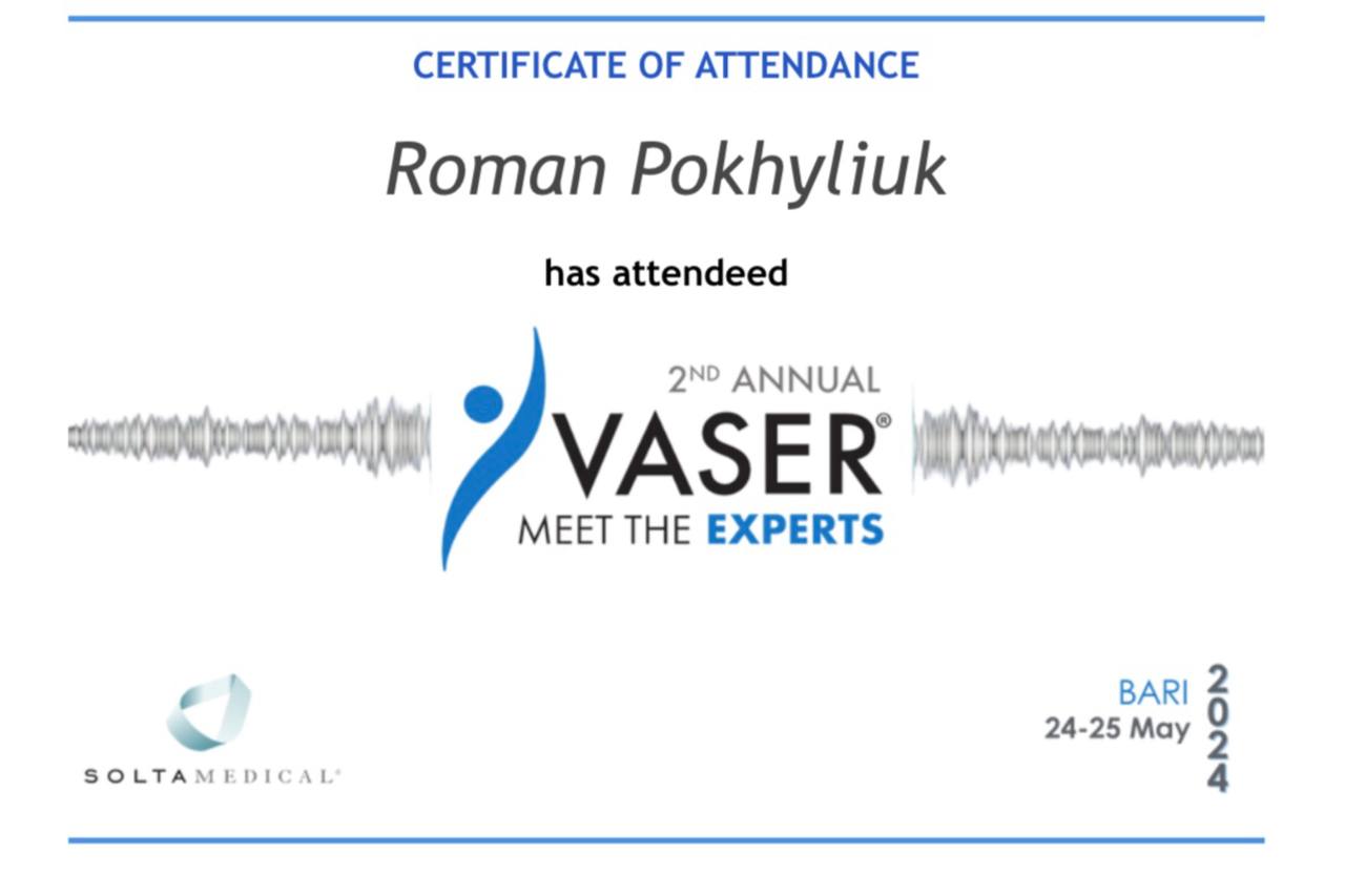 2014 р. – курс ТУ «Мініінвазивні техніки в пластичній хірургії» НМАПО ім. П.Л. Шупика.